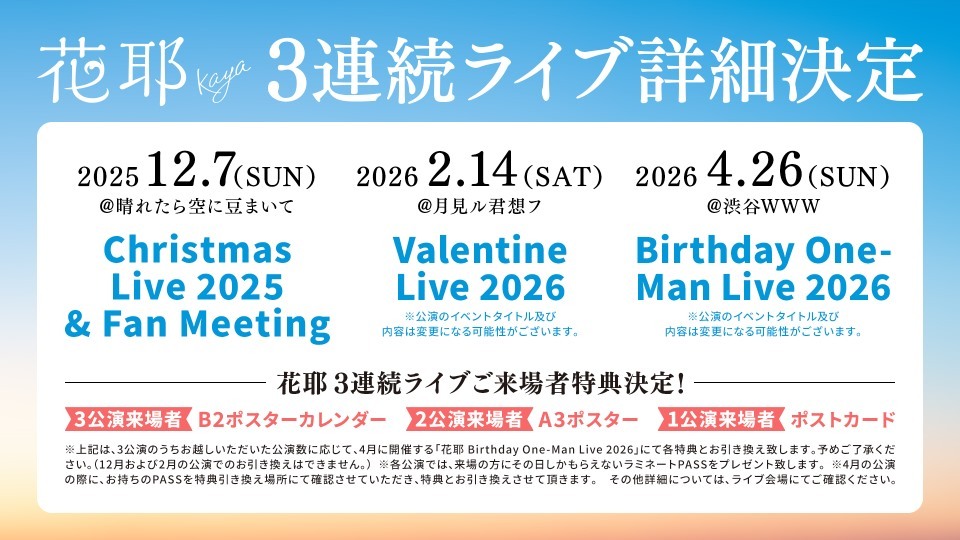 花耶 3連続ライブ詳細決定!!