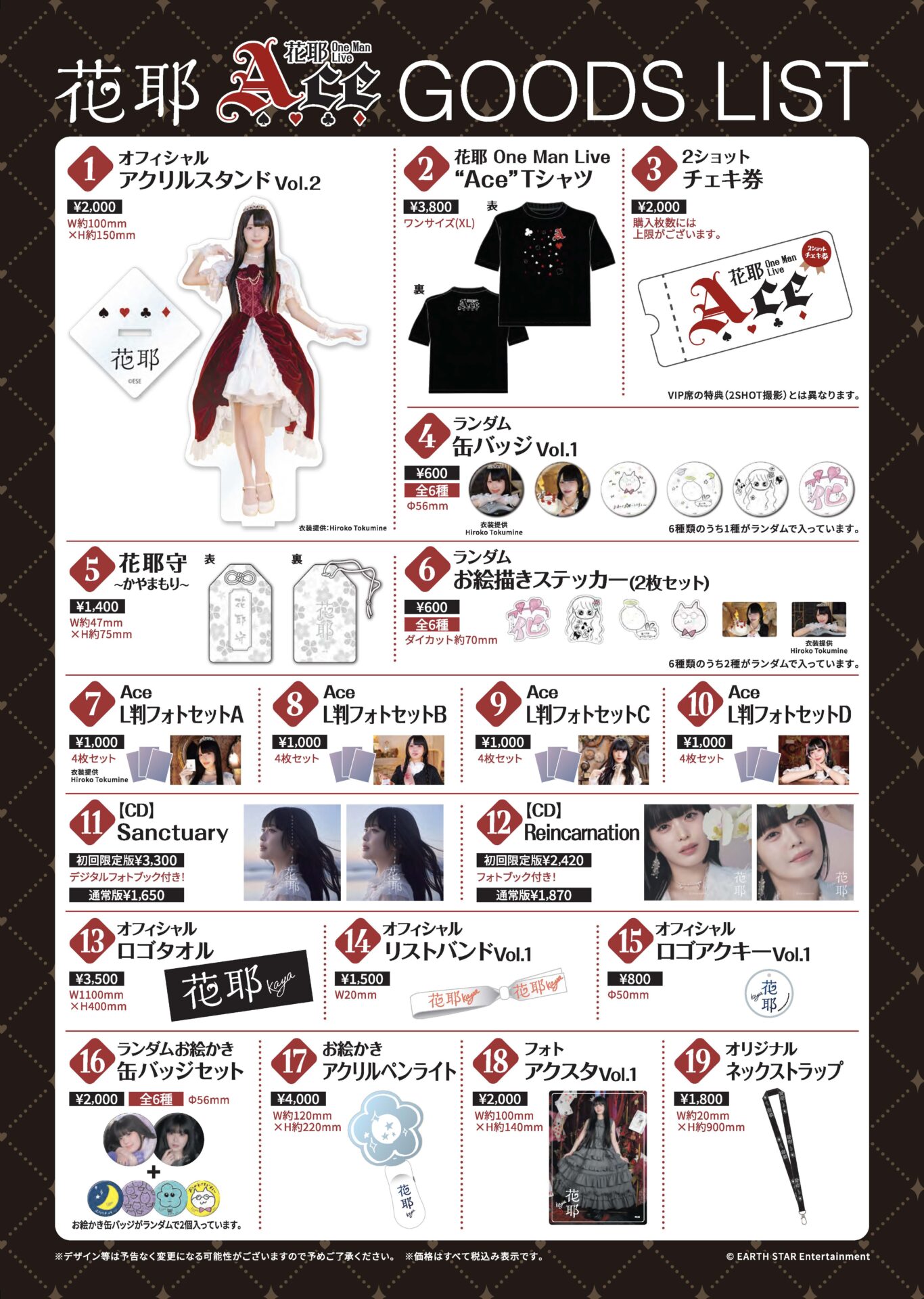 4月26日(日)に開催を予定している 「花耶 One Man Live “Ace”」に関して ライブグッズ情報を公開いたしました!